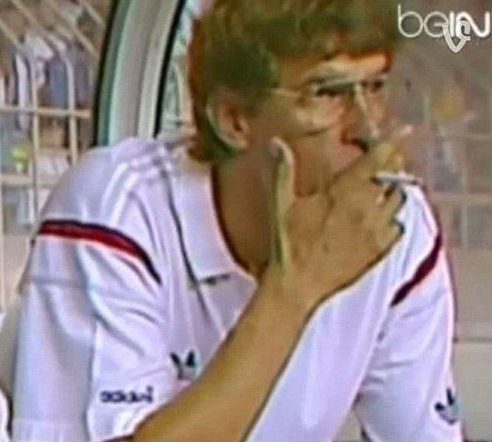 Arsene Wenger can be seen taking a soft drag during his time as Monaco boss. The Frenchman has come a long way since his time as a manager in France, Mr.Wenger is now a 'new man'.